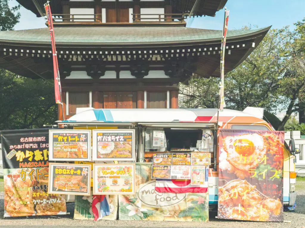 ステージでは日本の伝統文化とタイの舞踊・ムエタイなどのパフォーマンスが演じられ、境内には名古屋市内のタイ料理レストランが勢揃いした飲食ブースが並びます。タイと日本の雑貨の物販ブースや、観光情報コーナーも。タイ古式マッサージのブースもあるそうです。
